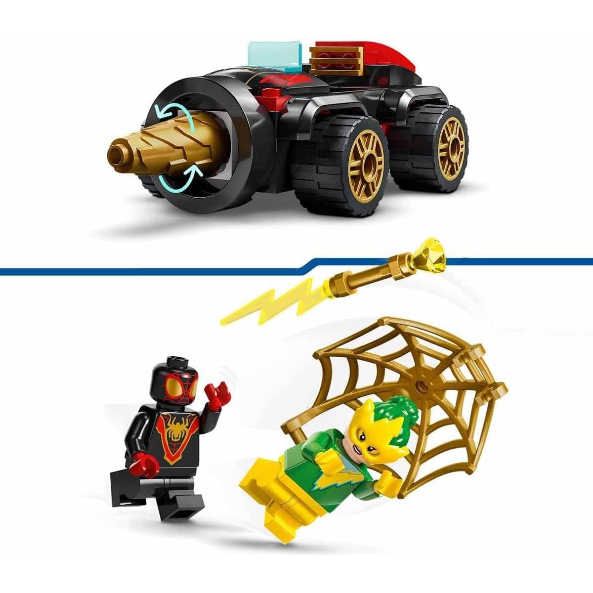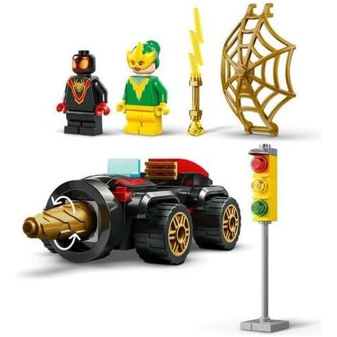 - Toy Spidey car with drill – This buildable, push-along model of Miles “Spin” Morales’ car has a ’drill’ at the front which kids can rotate