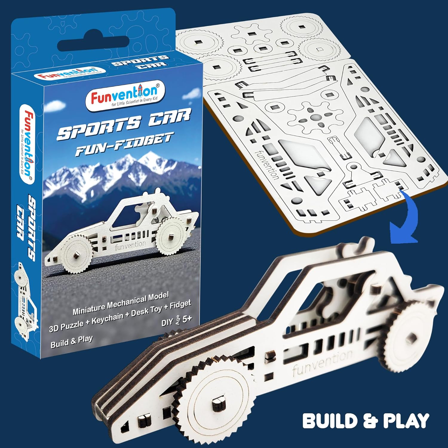 DIY MECHANICAL MODEL WITH MOVING GEARS: Kids assemble their own miniature Sports Car with a working geared mechanism. Encourages curiosity, hands-on building and mechanical understanding.
