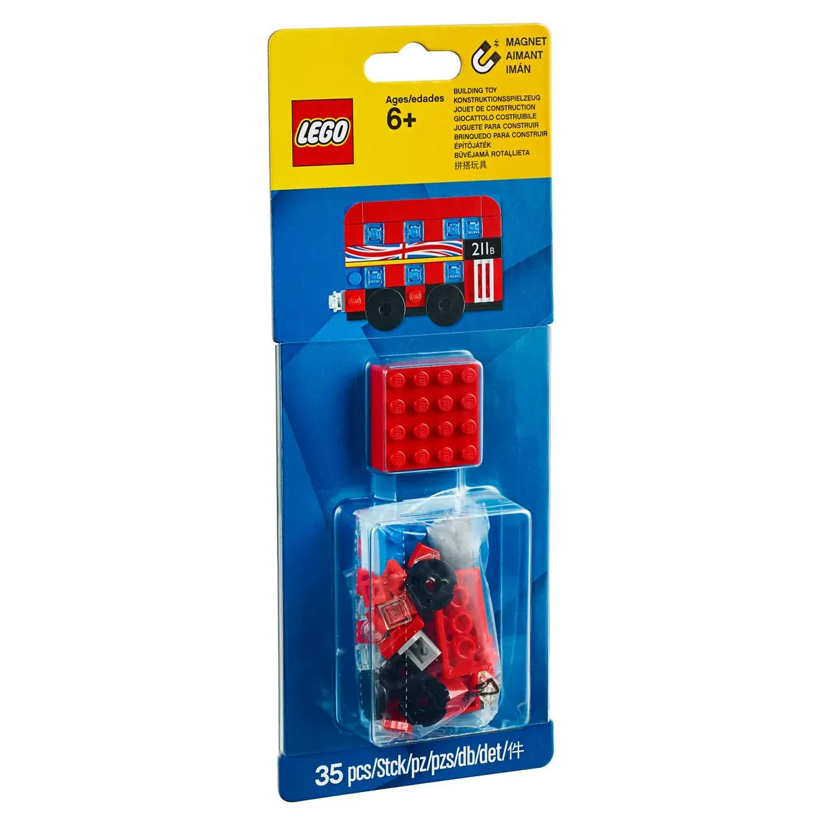 Celebrate one of the world’s best-known vehicles with this LEGO® Iconic 853914 London Bus Magnet Build, featuring a magnetic 4x4 red brick base, 33 LEGO building elements and a set of stickers for additional detailing. Build the London Bus and stick it on your fridge, locker or any other magnetic surface to add a touch of iconic LEGO style!