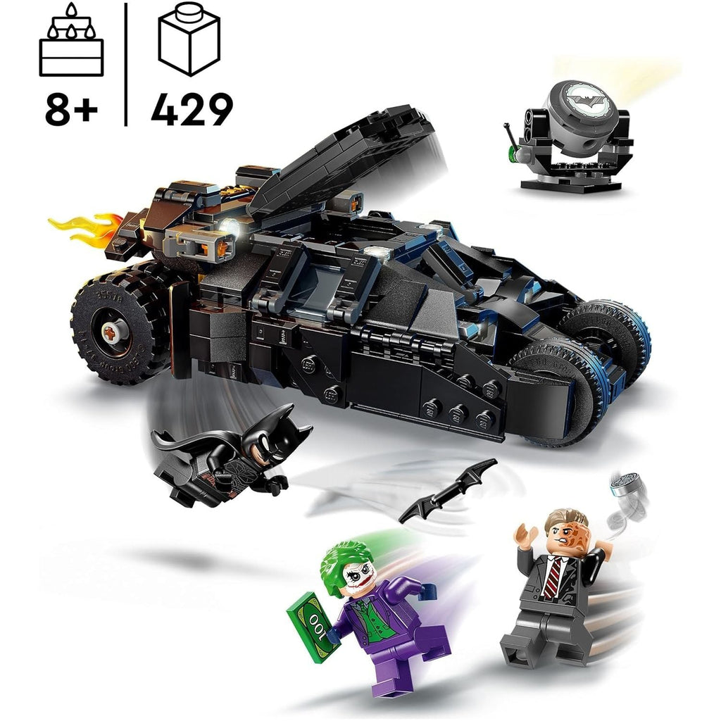 - LEGO® Batman™ Tumbler Batmobile™ – The toy car has a flame element attached to the tailpipe and opens to reveal an instrument panel and cockpit with room for the Batman minifigure