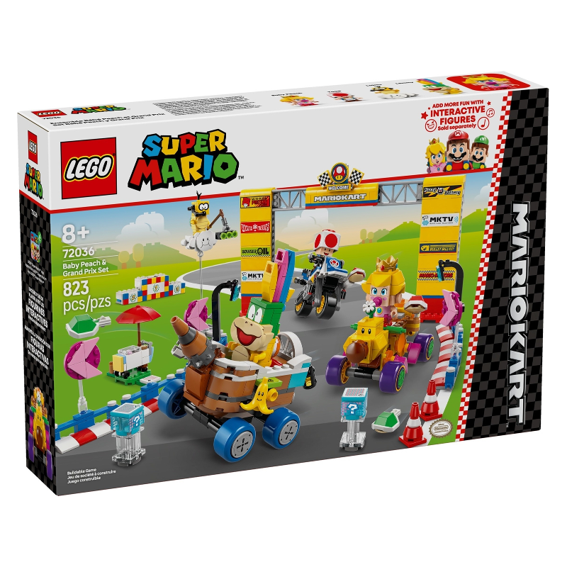 - Nintendo® character gift – Build a Mario Kart™ track and vehicles, race for victory (and take a break for ice cream) with this LEGO® Super Mario™: Mario Kart – Baby Peach & Grand Prix Set for kids