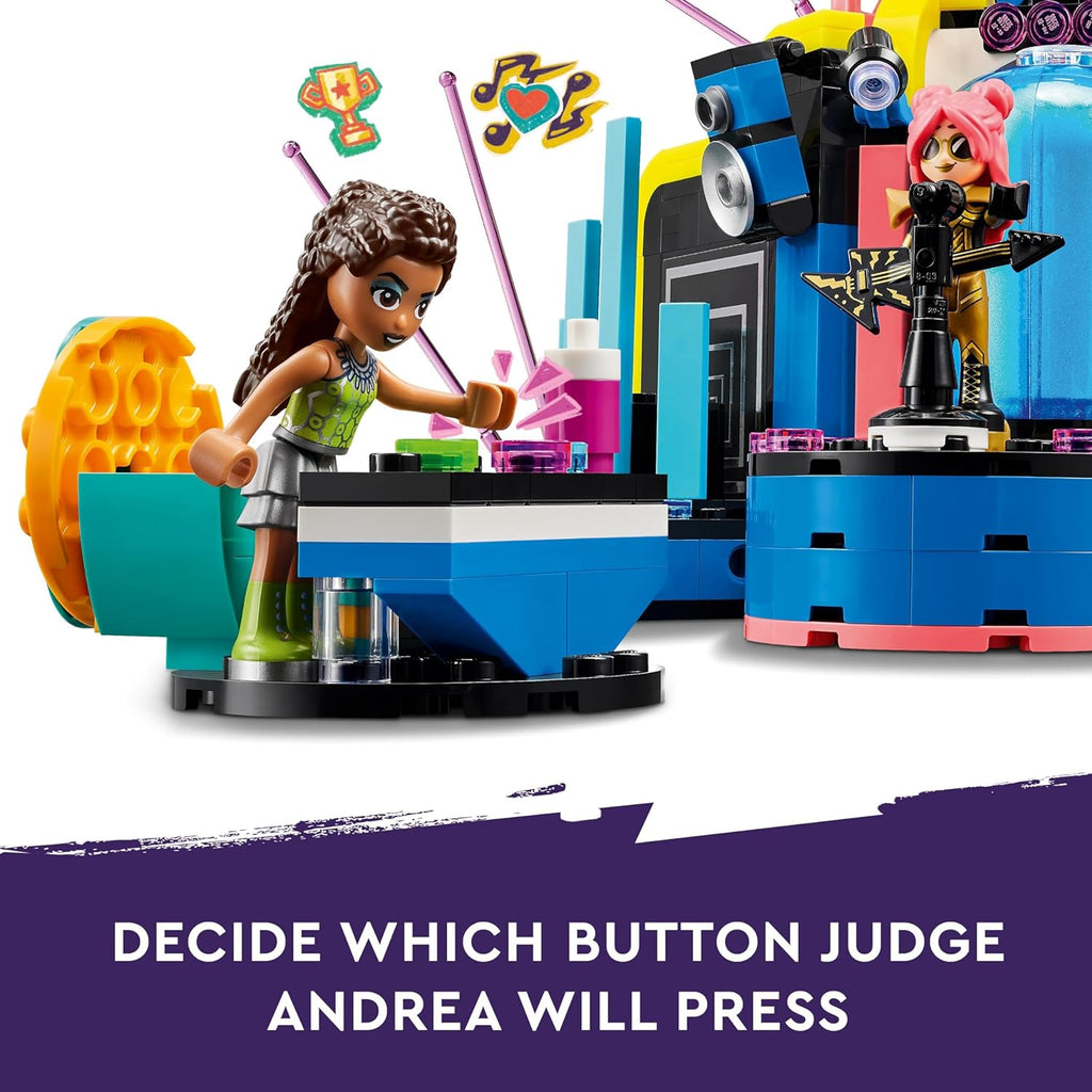 - 4 LEGO® Friends characters - Includes classic Friends character Andrea, who is now grown up andcoming back as a talent show judge, plus singer Ley-La, drummer Nabil and keyboard player Alexander