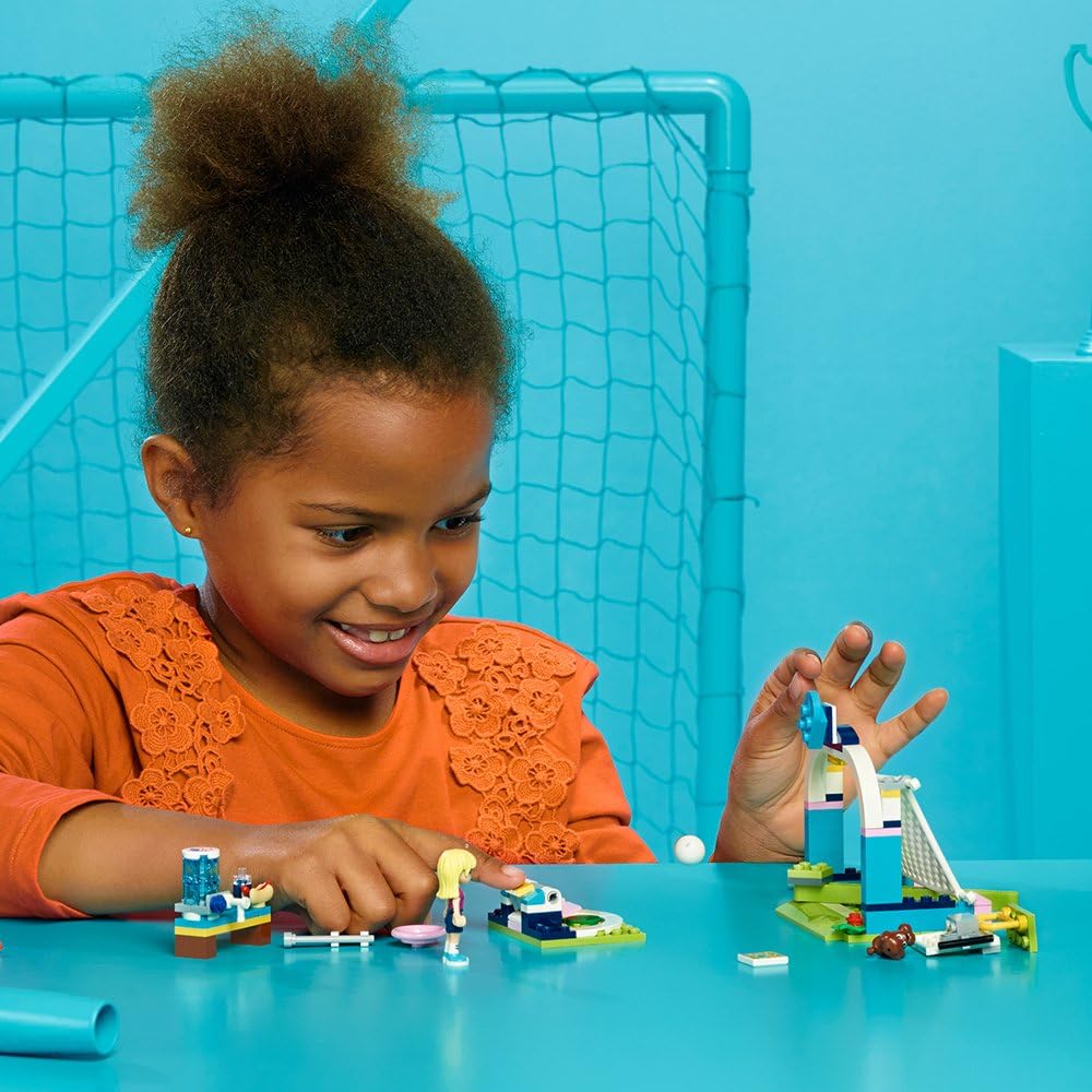 LEGO® Friends 41330 Stephanie’s Soccer Practice features a soccer goal with moving goalkeeper platform, and a football launcher with shooting function for endless play with this great children’s toy, alone or with a friend. There’s also a strategy board and a drinks station, plus Stephanie's pet puppy to add to the fun.