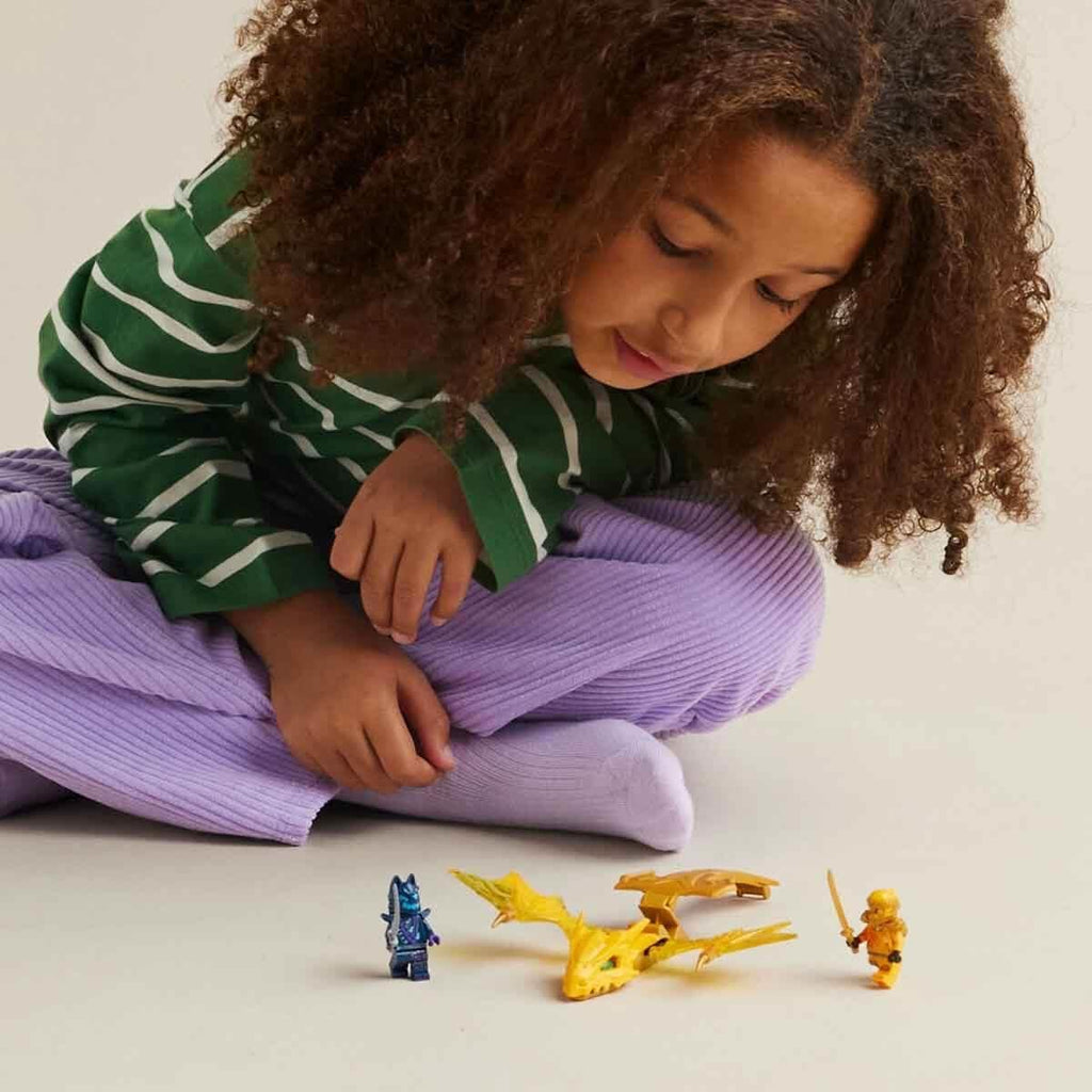 Boys and girls aged 6 and up can recreate their favorite scenes from season 2 of the NINJAGO® Dragons Rising TV show with the Arin’s Rising Dragon Strike (71803) ninja toy. Kids will be excited to build the first-ever LEGO® NINJAGO dragon action toy before they slam down the dragon’s golden tail and watch as it launches into epic battles.