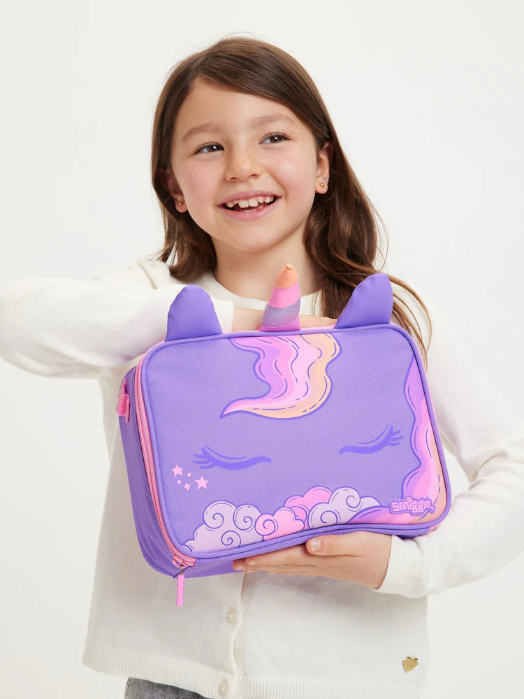 Keep lunch fresh and ready for when hunger hits with our Eclipse Oblong Attach Lunchbox. It features insulated and BPA free lining, a carry handle and a clip-on function that attaches to the front of our Eclipse Classic Attach Backpack for an all in one school set! Plus, check out the amazing applique details and character print!