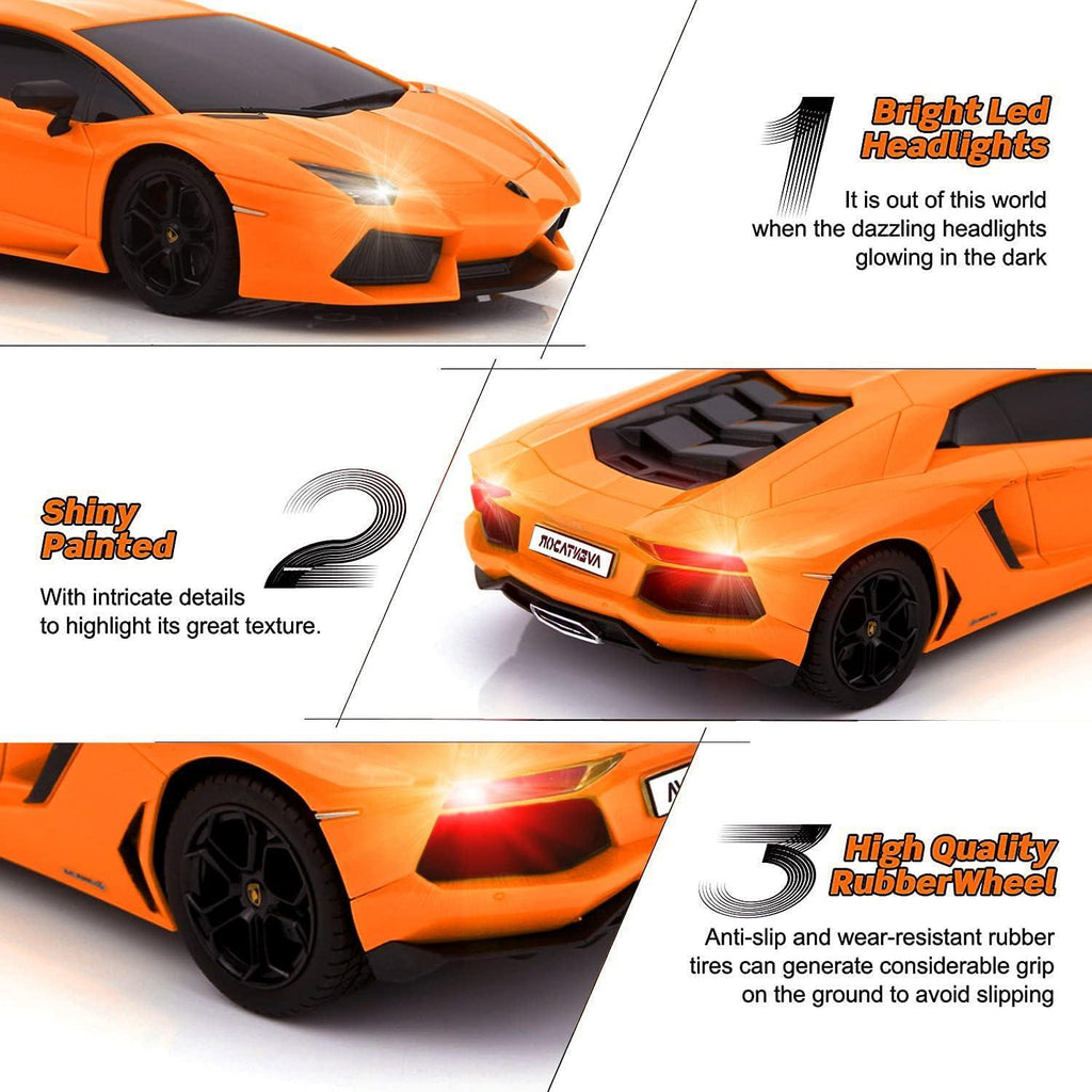 - Dazzling light-Headlights glow with forward motion. Rear lamps light up when moving backward. Cool Lamborghini racing car bring you infinity fun.
