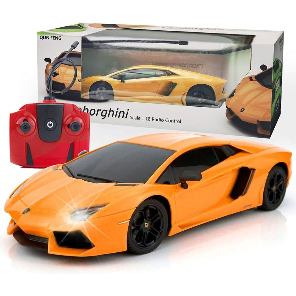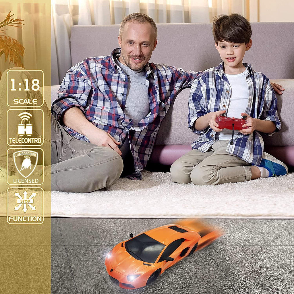 - NEW lamborghini RC CAR-1:18 scale size approximate dimensions, bigger size, More fun. Officially Licensed Lamborghini Car.For ages 8 and up. For kids birthday, Halloween, Christmas gift.