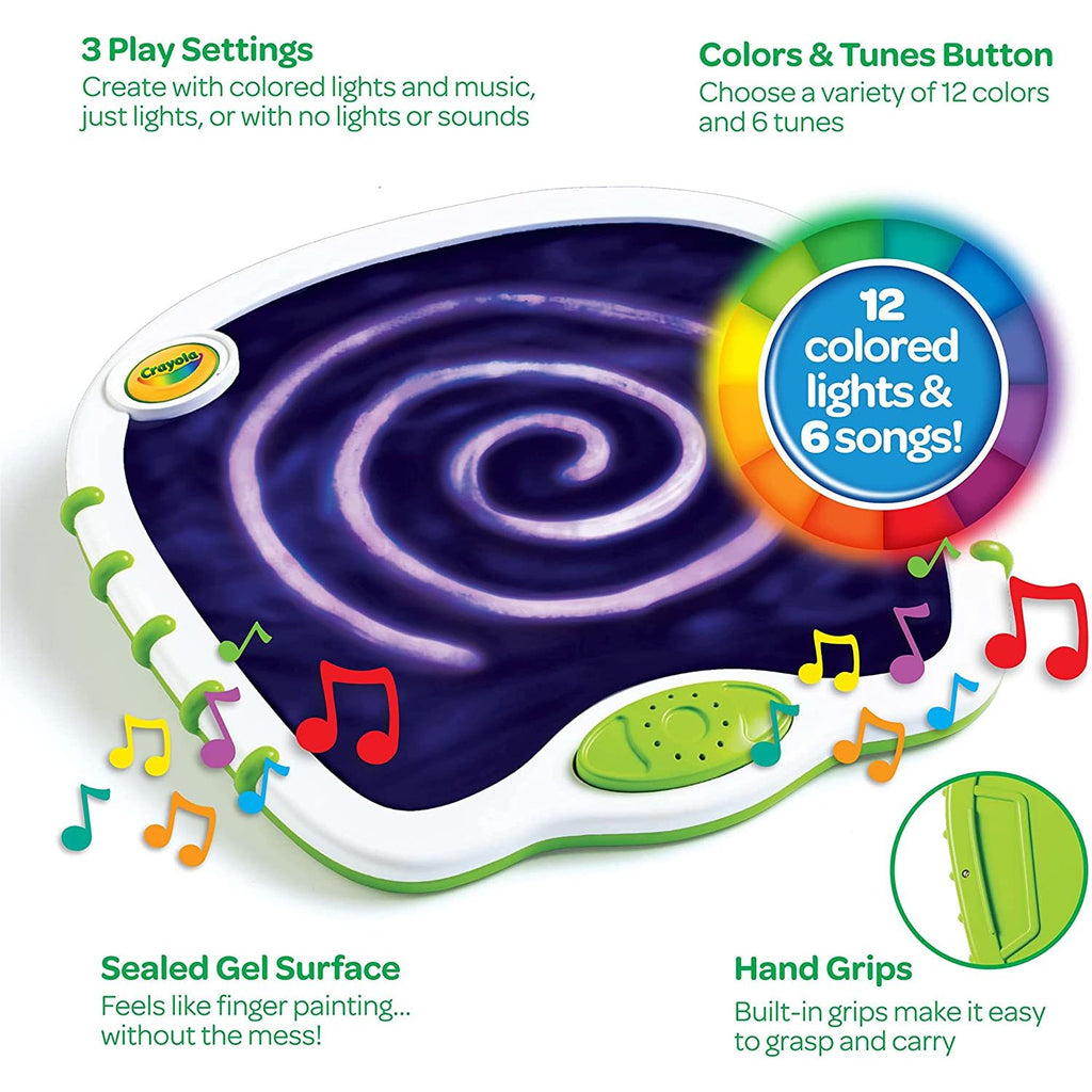 SENSORY TOY FOR TODDLERS: My First Crayola Touch Lights is a mess-free, portable doodle board that lights up and plays music.