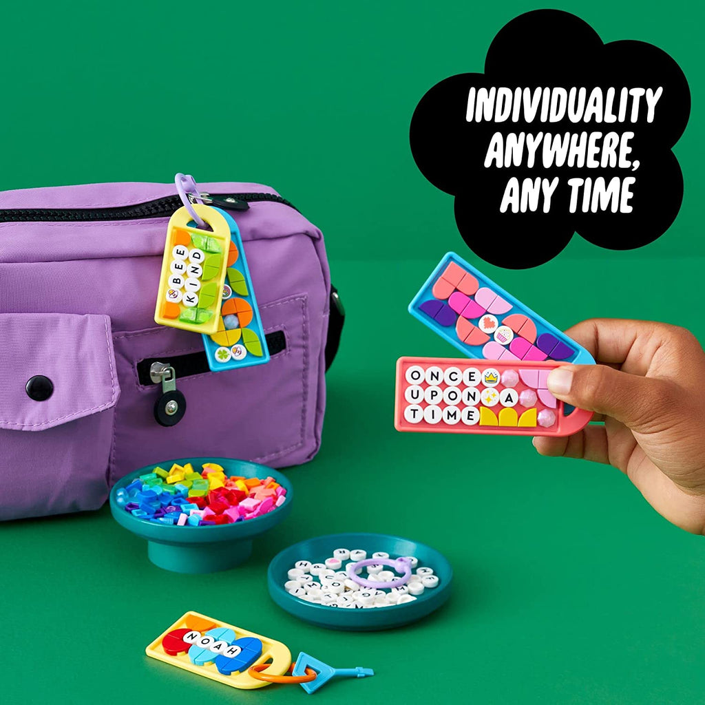 - Design, wear, tag, share – Treat an arts-and-crafts fan with this LEGO® DOTS Bag Tags Mega Pack – Messaging (41949) craft kit. Start the creative fun by opening the tray