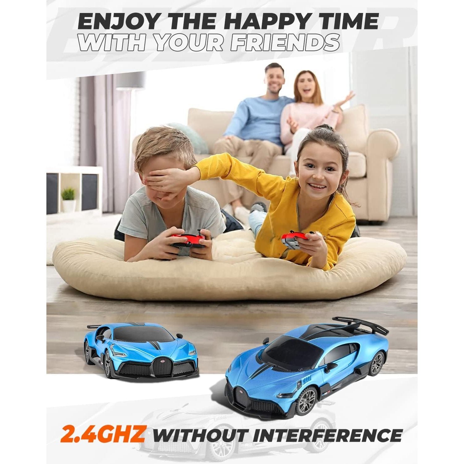 【FULLY FUNCTIONAL BUGATTI RC CAR】:The remote control car can move forward, back, stop, turn left and right.Control the Bugatti toy car running in a straight line by adjusting the direction switch at the bottom
