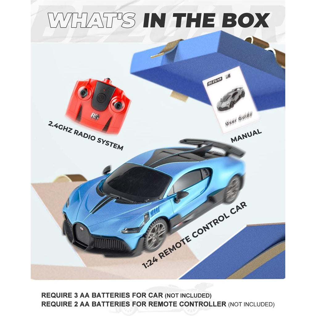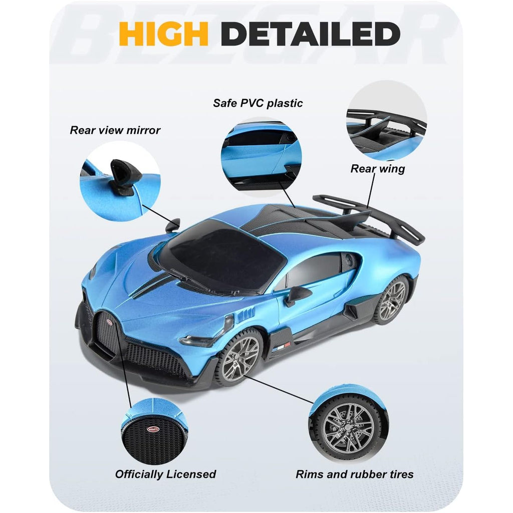 【BUGATTI REMOTE CONTROL CAR 】:Officially Authorized by Bugatti,the rc car has all the functions of a real car.For Bugatti toy car fans, this is a realistic small scale replica of a Bugatti model car