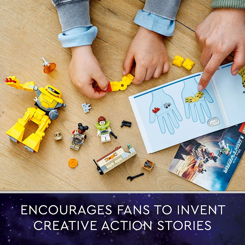 - Buildable action toy for Buzz Lightyear fans – Creative set comes with LEGO® Buzz Lightyear and Izzy minifigures kitted out in spacesuit helmets and armor, a posable, buildable mech toy and 3 weapons
