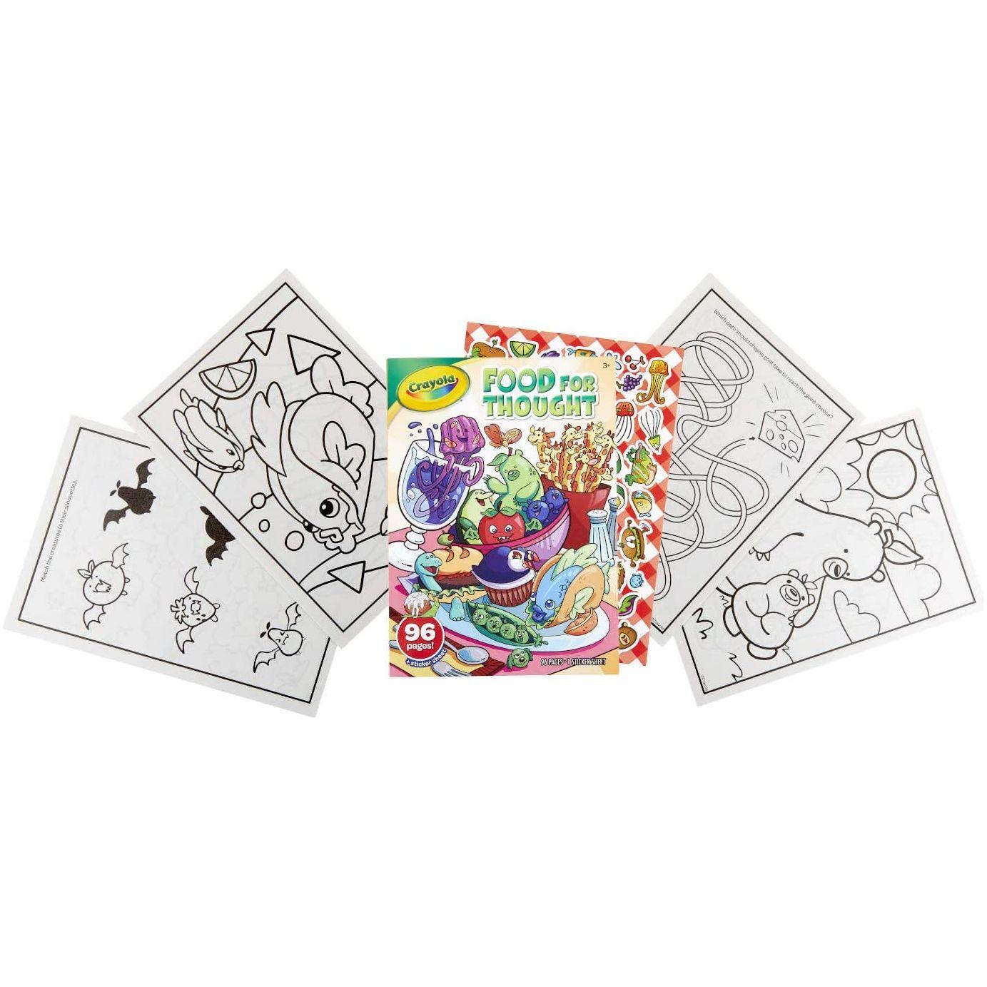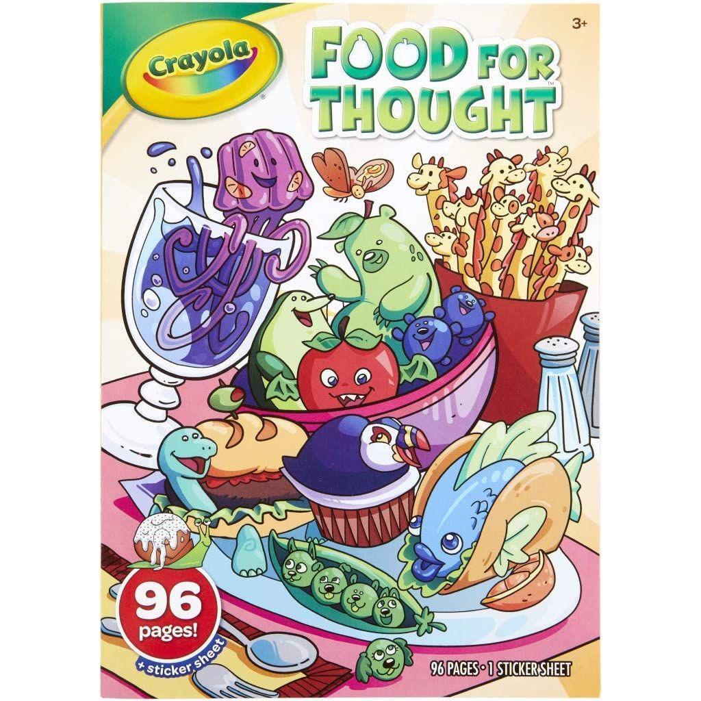 Crayola Food For Thought is a delightfully funny coloring book for kids with clever and visually stunning puns! Kids will love coloring and decorating these cute food-themed pages with stickers, and sharing them with friends. Features 96 Food Coloring Pages and 1 Food Sticker Sheet. Perfect for any occasion, this kids coloring book makes a great birthday or holiday present. Ideal coloring book for girls and boys, age 3 & up!