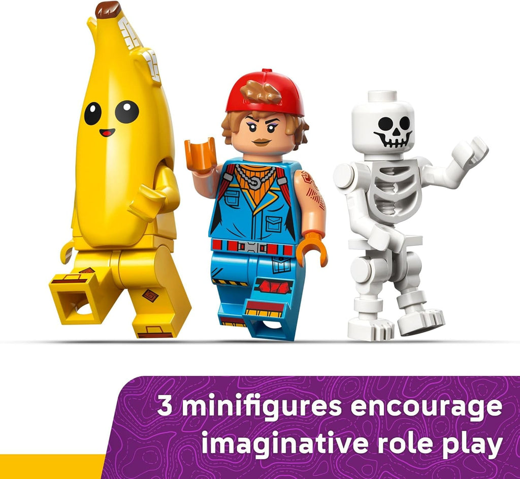 • LEGO® Fortnite® playset – Spark imaginative play with the LEGO Fortnite Peely & Sparkplug’s Camp building set for kids aged 7 and up