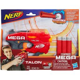Make every shot count when you blast the most accurate Nerf Mega darts!* The Nerf Mega Talon blaster comes with 3 AccuStrike Nerf Mega darts that are designed for accuracy. The blaster's compact size makes it great for indoor Nerf games that take place in smaller spaces, when you need to be quick and move fast. It fires 1 dart at a time and has a built-in dart storage area, so you can reload fast. The Talon blaster packs Nerf Mega power in every shot while being easy to use: Load 1 dart, pull the priming handle, and press the trigger. It comes with 3 Official AccuStrike Nerf Mega darts that are tested and approved for performance and quality and constructed of foam with flexible, hollow tips. For indoor and outdoor fun with family and friends, take aim with the Nerf Mega Talon blaster!