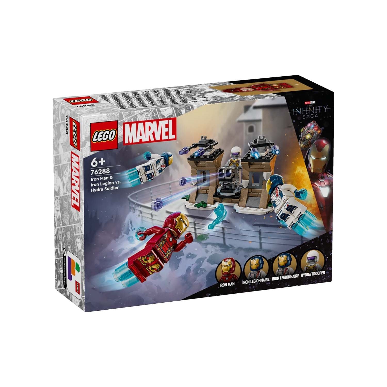 The LEGO® Marvel Iron Man & Iron Legion vs. Hydra Soldier (76288) buildable Super Hero adventure toy recreates a scene from Marvel Studios’ Avengers: Age of Ultron, where Iron Man and 2 Iron Legionnaires fly to a Hydra Trooper’s fortified base. This buildable Super Hero playset is packed with cool features and accessories, making it a great buildable toy for kids, especially Avengers fans, aged 6 and up.