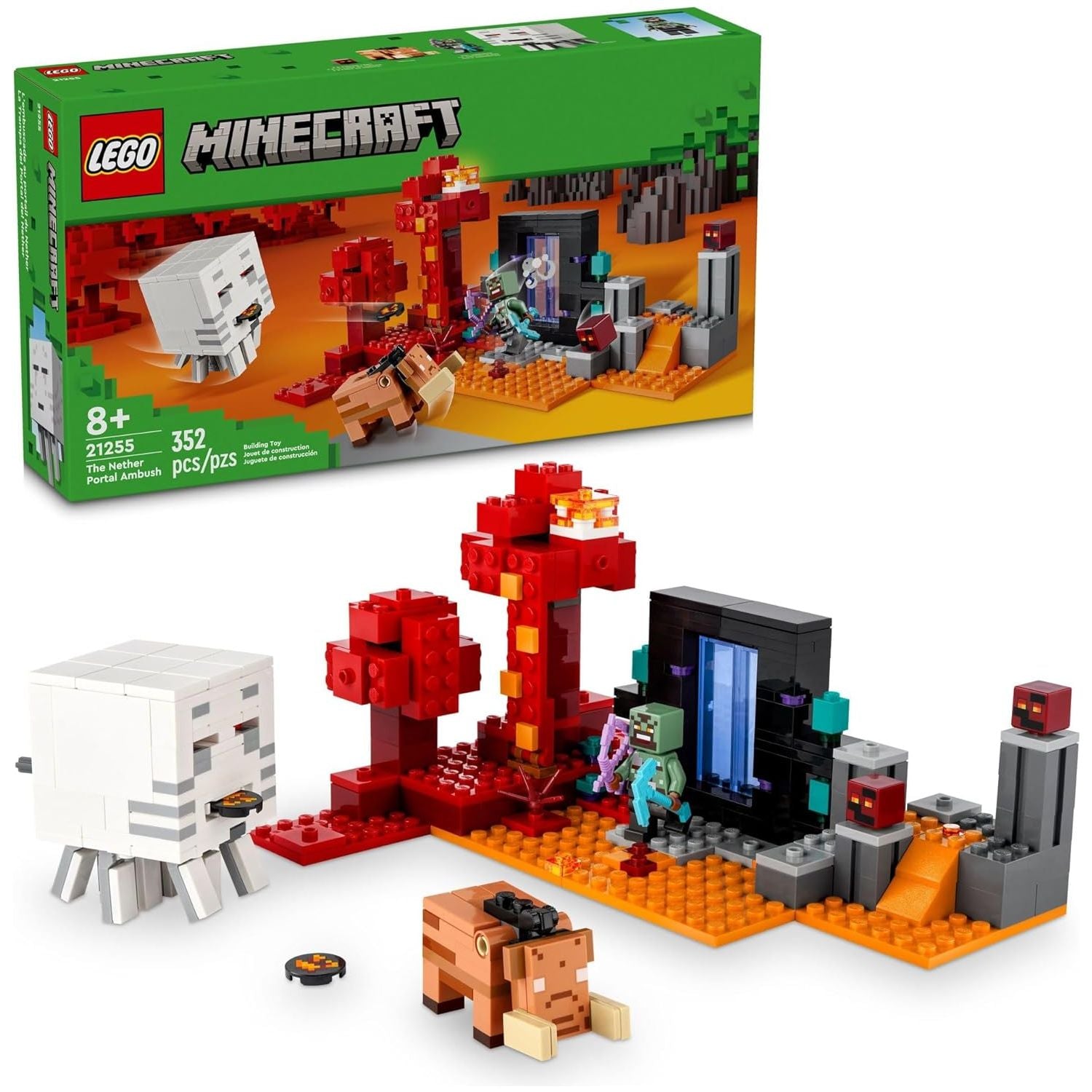 - LEGO® Minecraft® Nether portal toy – This Minecraft adventure set for gamers, kids, boys and girls aged 8+ features buildable action scenes with iconic Minecraft characters