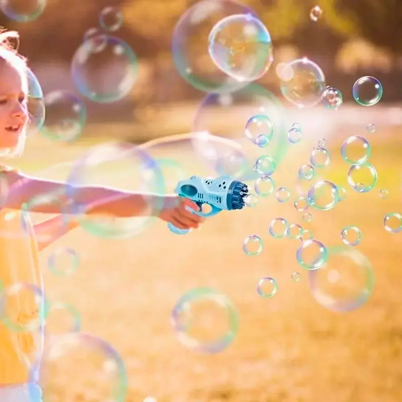This electric bubble gun has 12 bubble holes and can blow hundreds of bubbles per minute. Colorful bubbles can attract childrens attention when bubbles are flying all over the sky.
