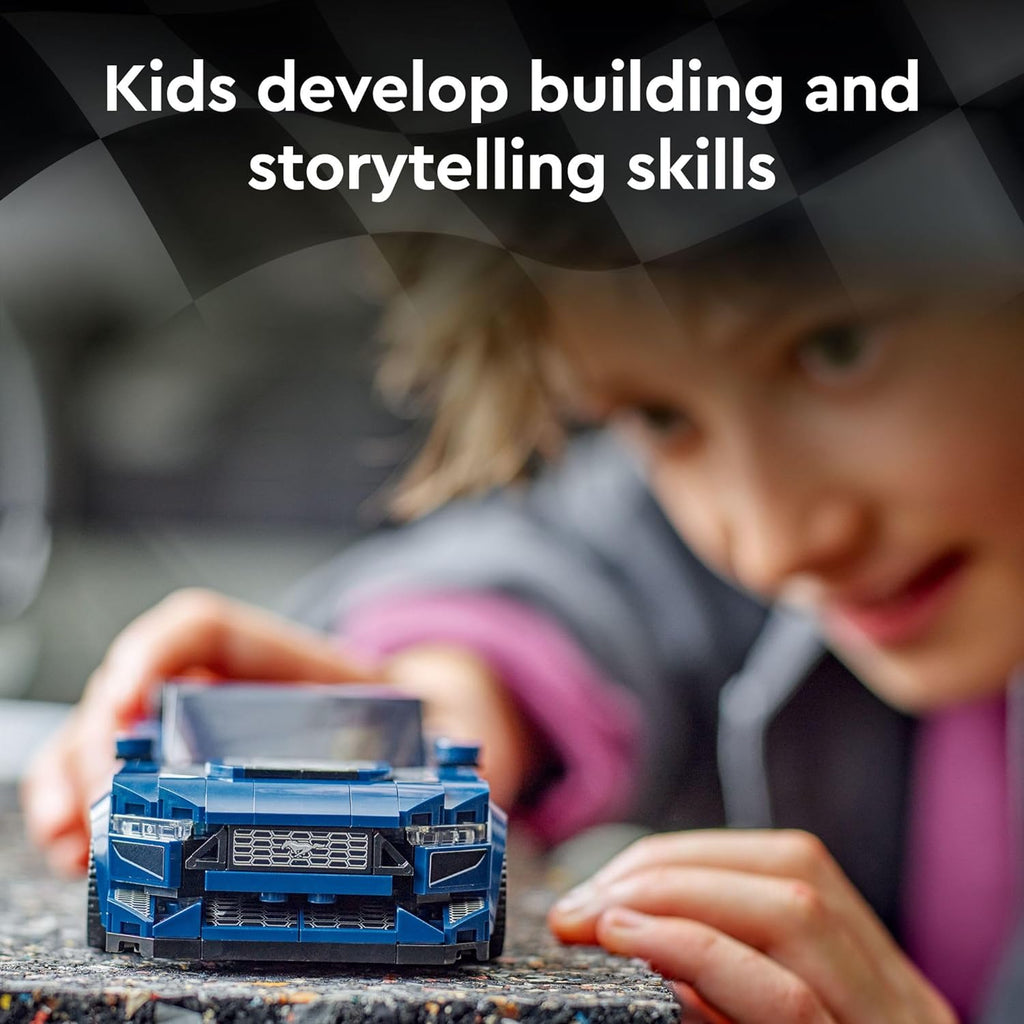 The LEGO® Speed Champions Ford Mustang Dark Horse Sports Car (76920) toy vehicle is a faithful brick-built version of the powerful real-life model from the iconic American car maker. Kids aged 9+ will love to collect, build, display and play out action with this blue toy car.