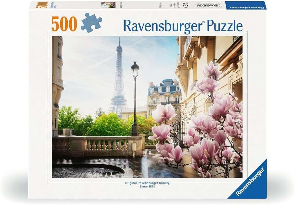 The Ravensburger puzzle "Spring in Paris," with its 500 pieces, transports you to the picturesque atmosphere of the French capital. Suitable for teenagers and adults aged 12 and up, it offers a relaxing escape from everyday life.