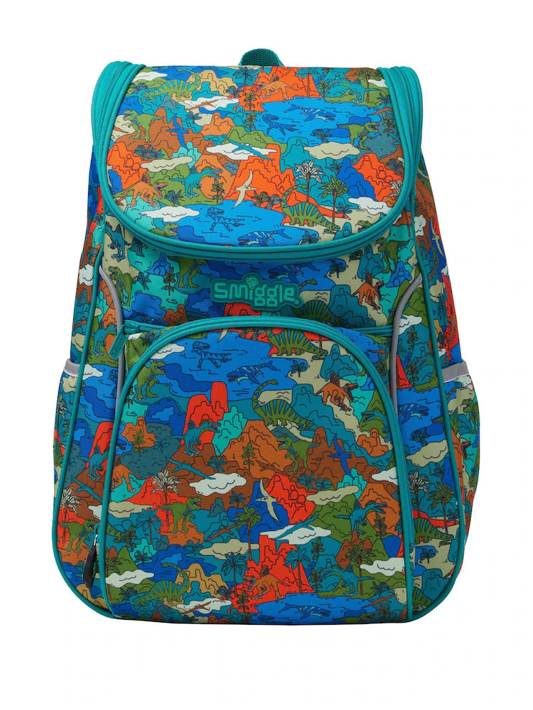 Our Surreal Access Backpack is the perfect pick for school, sports, travel and more! It features 3 zipped compartments, dual drink bottle sleeves and a padded tech pocket for all essentials, plus padded shoulder straps and a chest strap for all day comfort! Top down access to the main compartment makes packing for each and every adventure super easy. Plus, check out the endlessly fun design details including reflective trimming, embossed Smiggle badge and a super cool print.