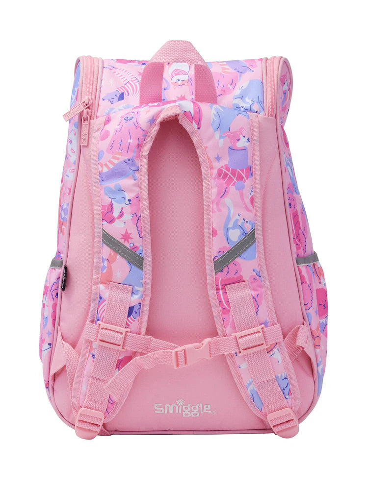 Our Surreal Access Backpack is the perfect pick for school, sports, travel and more! It features 3 zipped compartments, dual drink bottle sleeves and a padded tech pocket for all essentials, plus padded shoulder straps and a chest strap for all day comfort! Top down access to the main compartment makes packing for each and every adventure super easy. Plus, check out the endlessly fun design details including reflective trimming, embossed Smiggle badge and a super cool print.