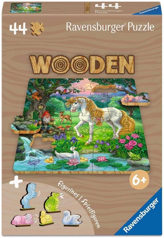 Enter a world of enchantment with our Unicorn Wonderland wooden jigsaw puzzle! This vibrant 44-piece puzzle features a beautiful unicorn surrounded by woodland creatures, graceful ducks gliding across a lily pond, and even a cheeky gnome joining the magical fun.